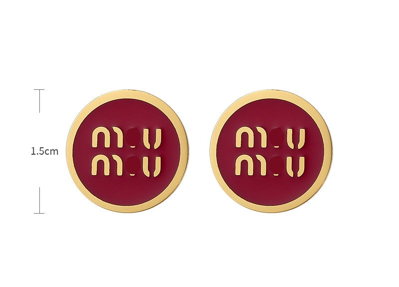 French retro coin stud earrings, niche design, enamel glaze, light luxury temperament, letter stud earrings